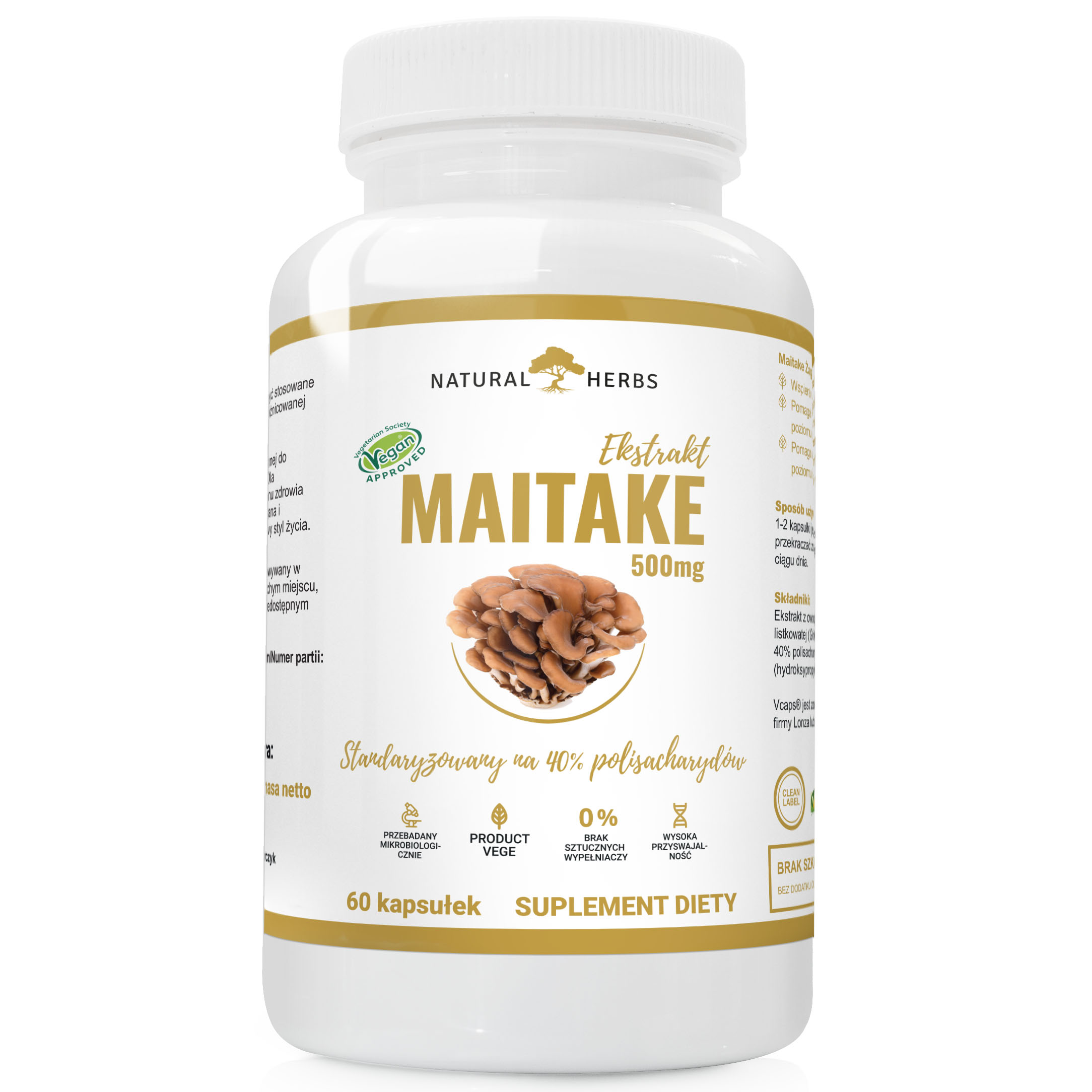 Maitake to grzyb bogaty w witaminy, minerały, błonnik i beta-glukany, które wspierają ogólne zdrowie organizmu. Wykazuje silne właściwości immunomodulujące – wspomaga aktywność komórek odpornościowych, takich jak limfocyty i komórki NK. Dodatkowo może korzystnie wpływać na regulację poziomu cukru i lipidów we krwi, wspierając jednocześnie zdrowie serca i wątroby.