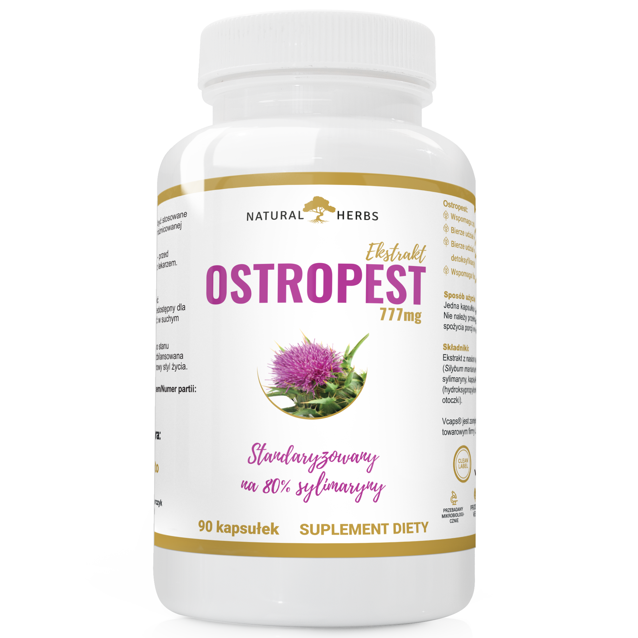NATURALNY Ostropest Plamisty 777mg 80% SYLIMARYNY TRAWIENIE DETOX SERCE VEGE 90 kapsułek